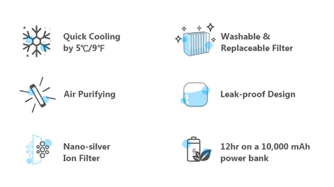 Upgraded atomizer, cool faster. (You can also choose to use ice cubes or ice crystals). Can be used in various situations. (such as after exercise, cooking in the kitchen, RV, etc.)